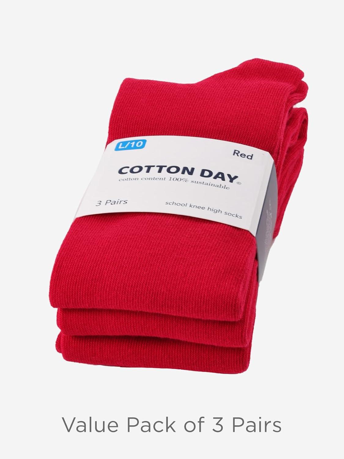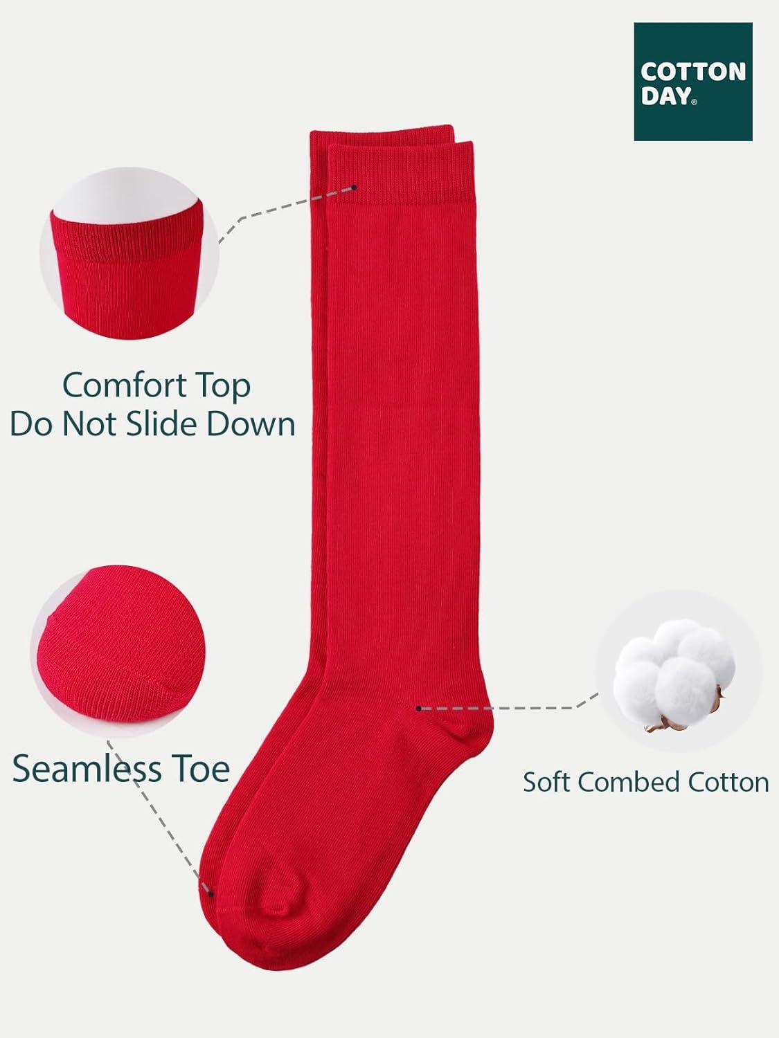 imageCOTTON DAY 3 Pack Kids Girls Unisex Soft Knee High School Uniform Dress Socks Seamless Toe Black White Navy Blue BurgundyPlain Red
