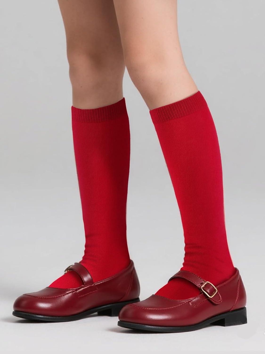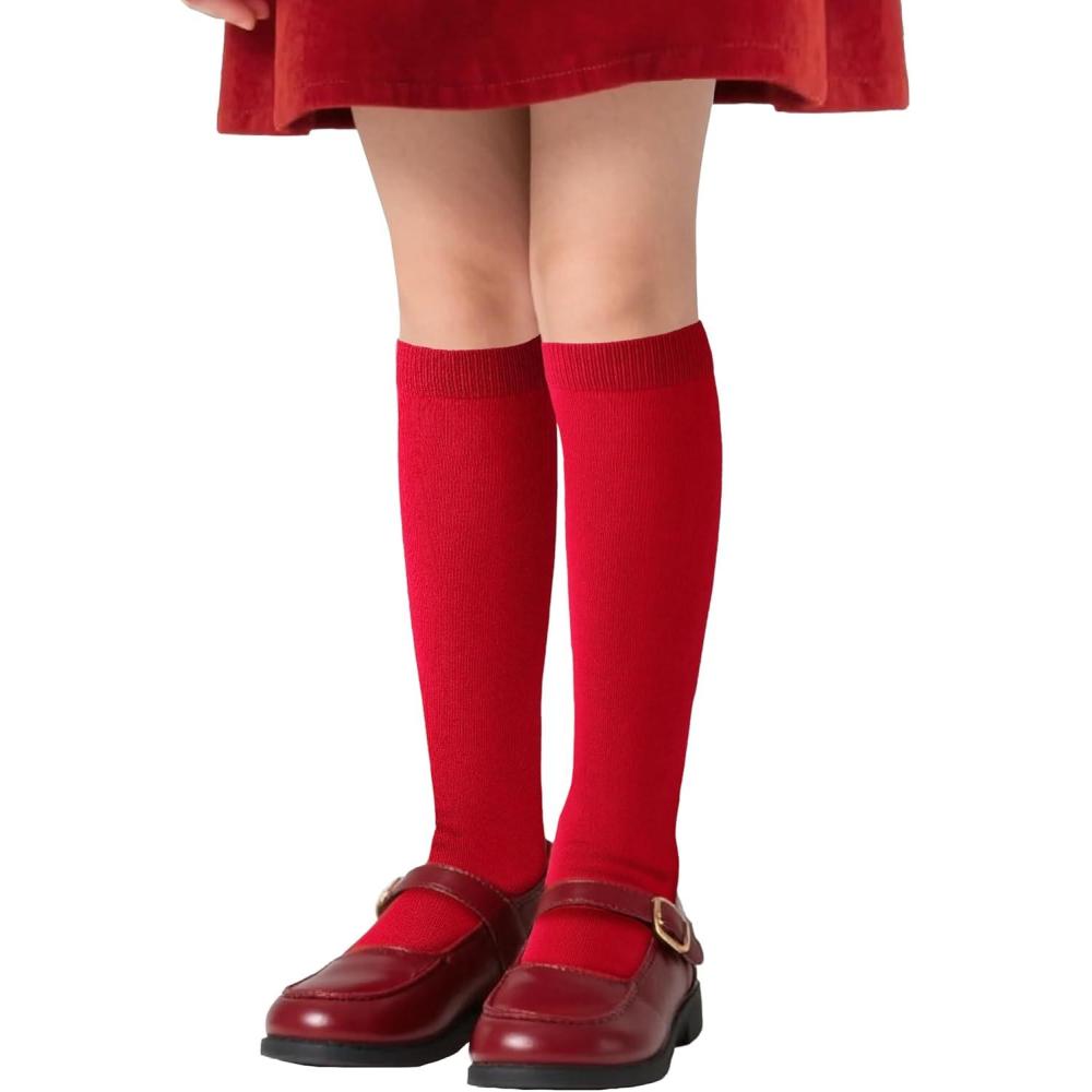 COTTON DAY 3 Pack Kids Girls Unisex Soft Knee High School Uniform Dress Socks Seamless Toe Black White Navy Blue Burgundy(Plain Red)