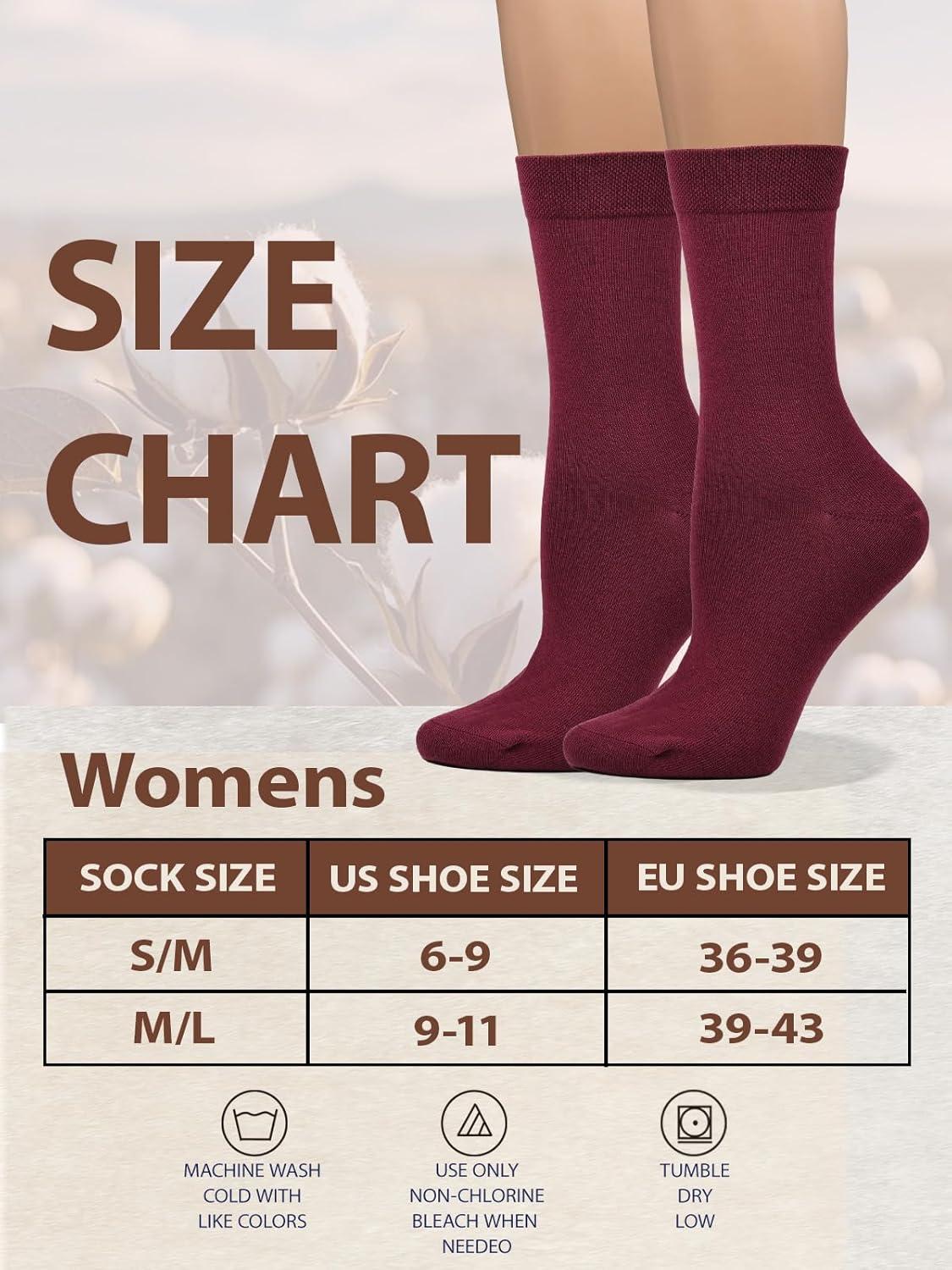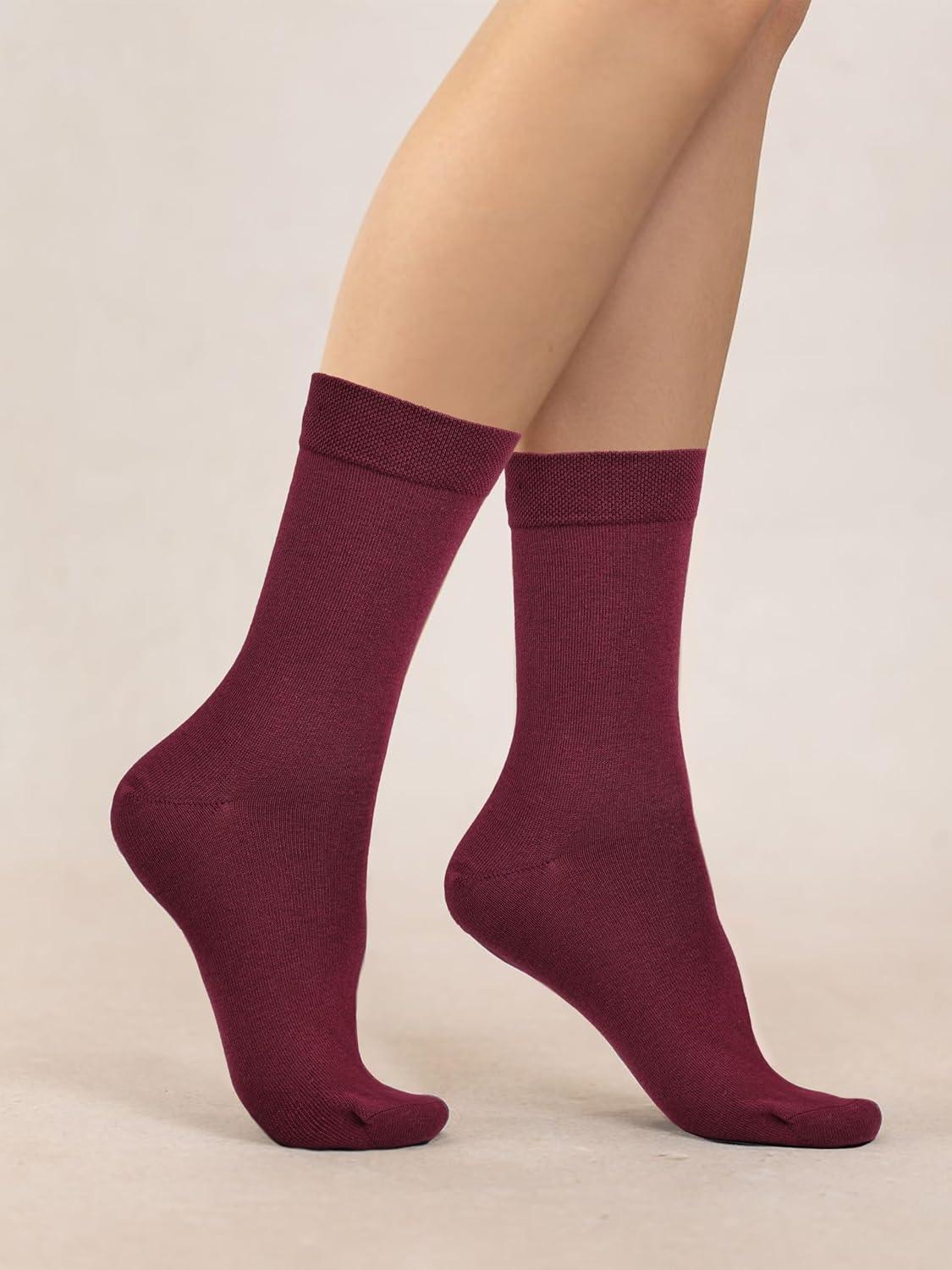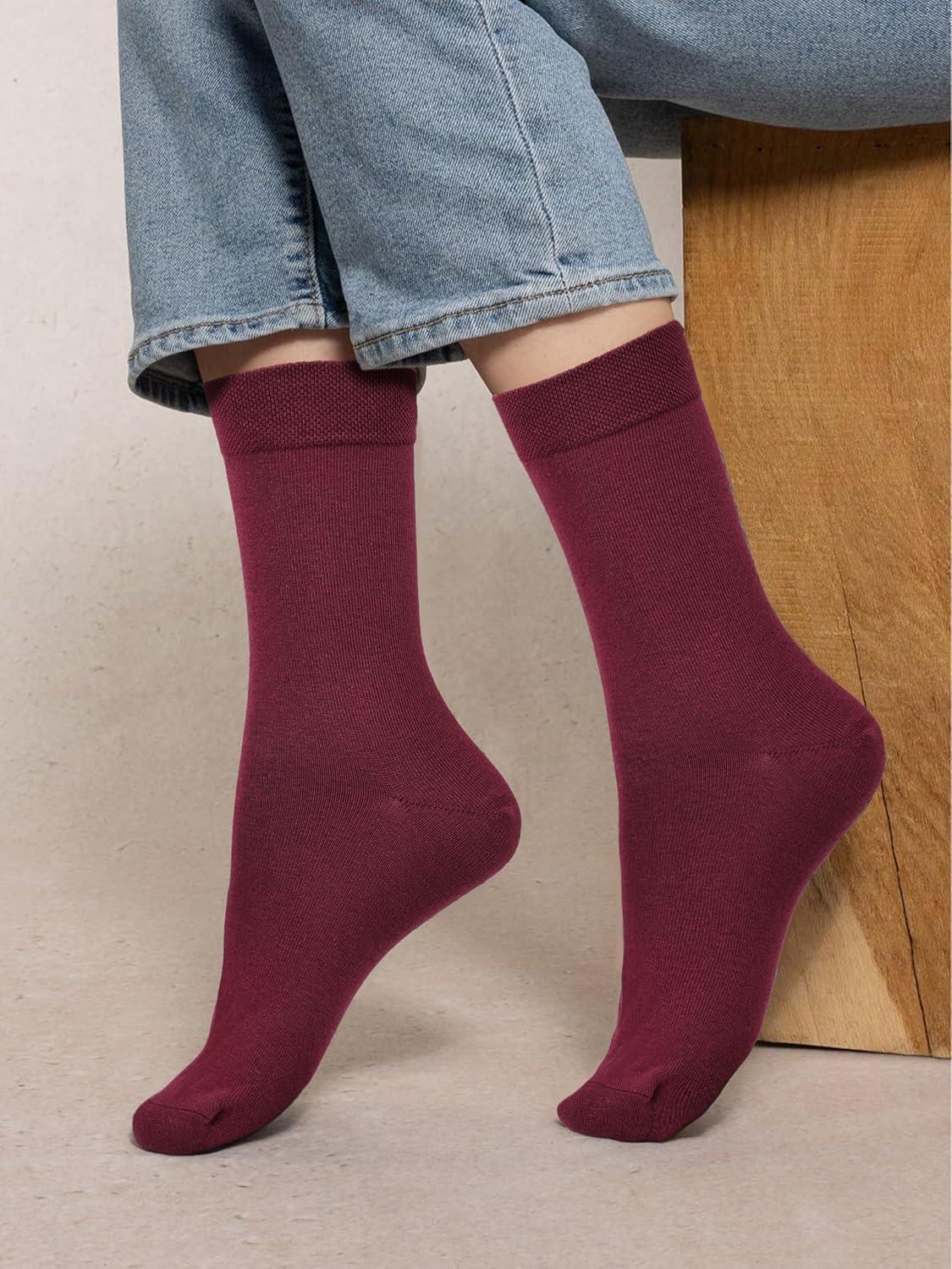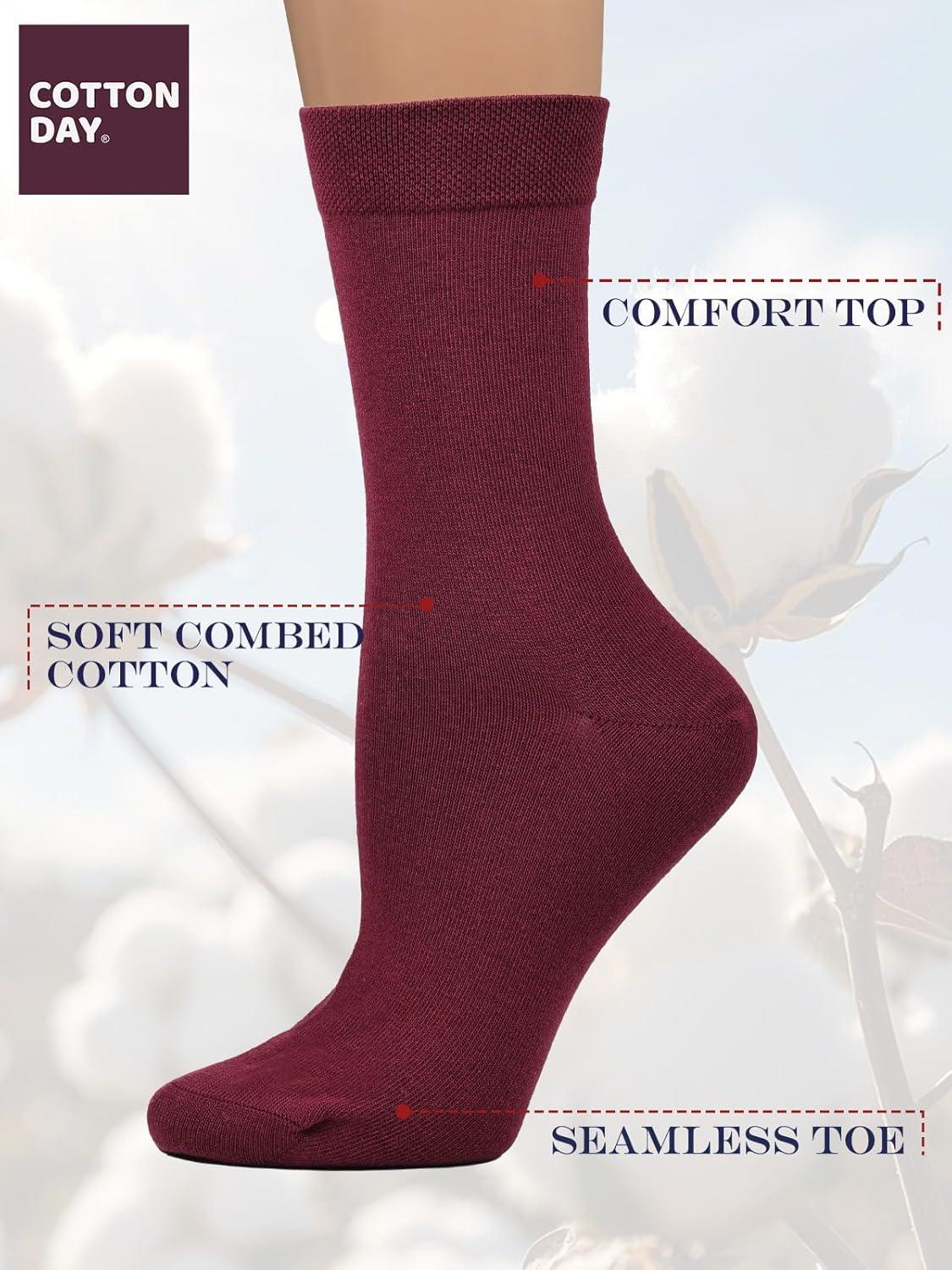 COTTON DAY Women's Soft Combed Cotton Dress Socks Seamless Toe Black White Gray Navy Blue Brown Beige(Burgundy)
