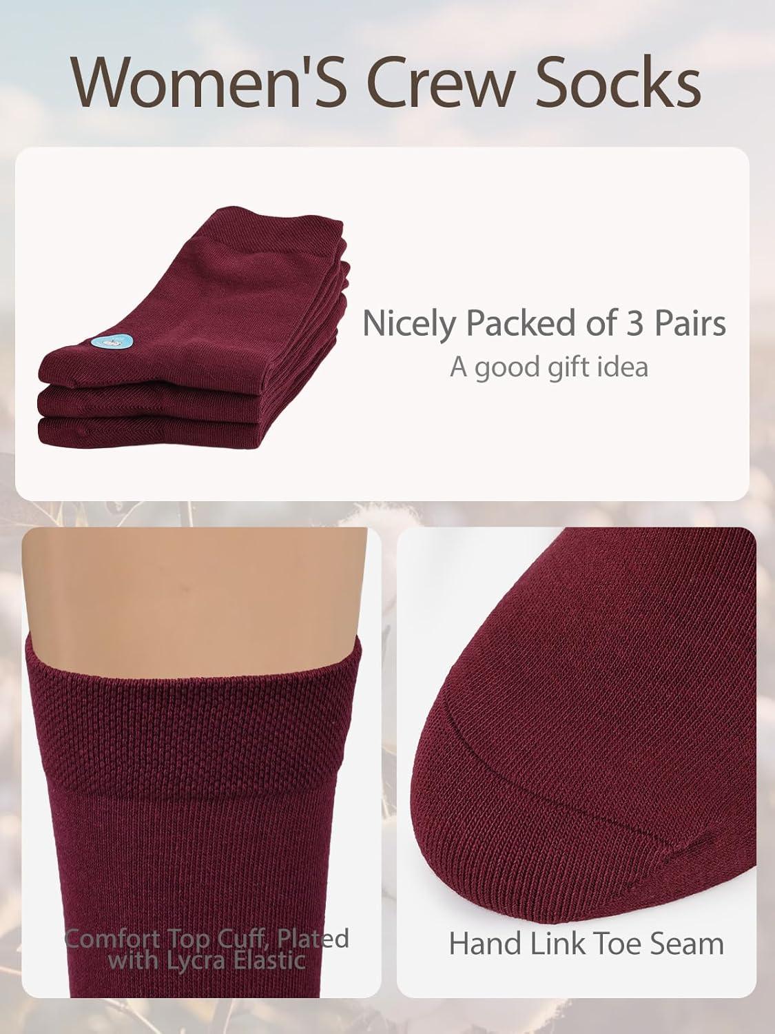 COTTON DAY Women’s Soft Combed Cotton Dress Socks Seamless Toe Black White Gray Navy Blue Brown Beige(Burgundy)