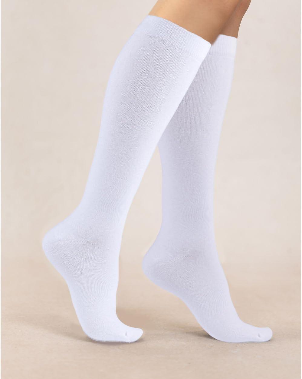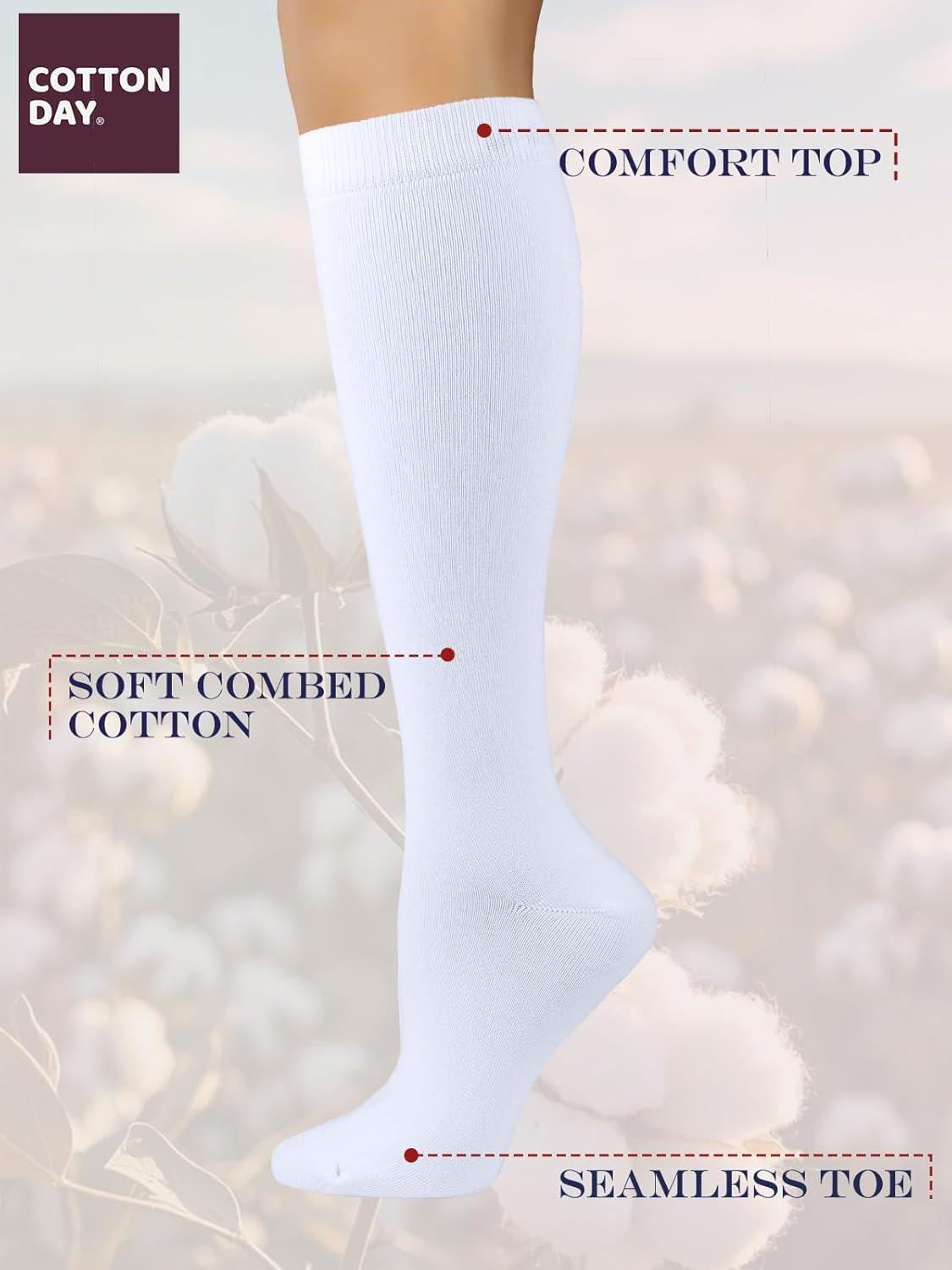 COTTON DAY Women’s Soft Combed Cotton Knee High Long Calf Dress Socks Seamless Toe Black White Gray Navy Blue Brown(Plain White)